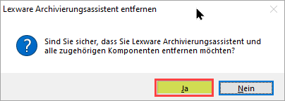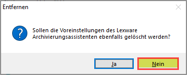 - Klicken Sie bei der Abfrage, ob die Voreinstellungen des Lexware Archivierungsassistenten ebenfalls gelöscht werden sollen' auf 'Nein'.