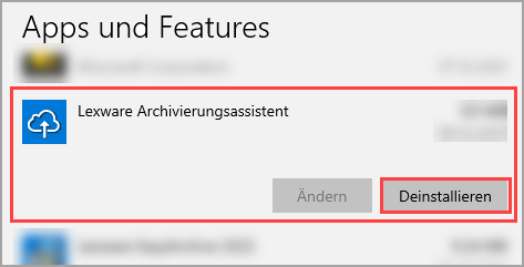 - Klicken Sie auf 'Lexware Archivierungsassistent Uninstaller'.