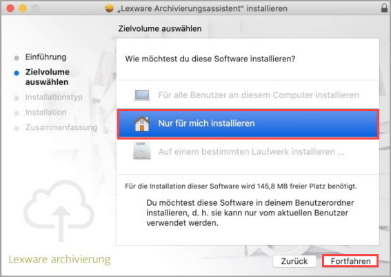 - Klicken Sie auf 'Nur für mich installieren' und auf 'Fortfahren'.