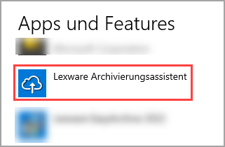 - Suchen Sie in der Liste nach dem Eintrag 'Lexware archivierung'.