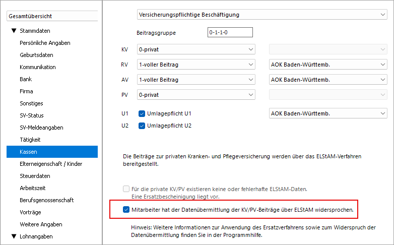 Mitarbeiter hat der Datenübermittlung der KV/PV Beiträge über ELStAM widersprochen