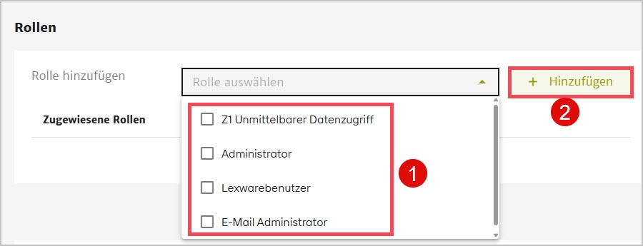 - Hinterlegen Sie die entsprechende zugewiesene Rolle (1).