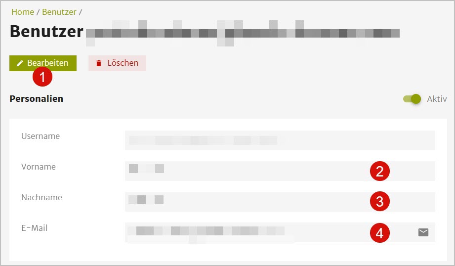 - Unter (4) können Sie bestehende Nutzer bearbeiten oder löschen.