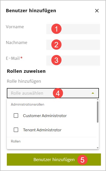 - Zum Abschluss klicken Sie auf 'Benutzer hinzufügen' (5).