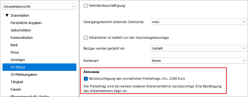 - Aktivieren Sie die Checkbox 'Aktivrente'.