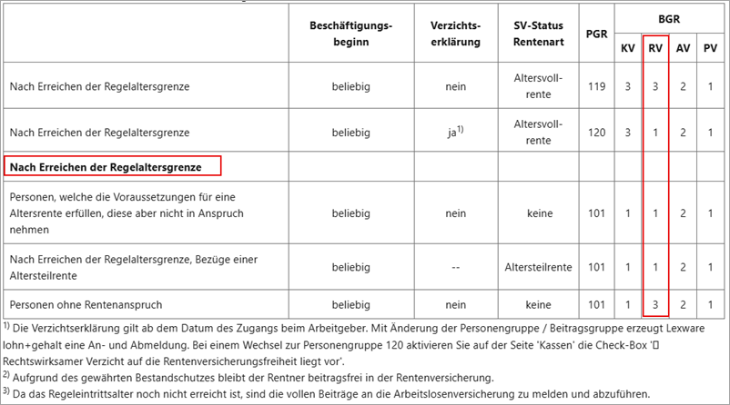 Hinweis: Wenn die Checkbox nicht sichtbar oder deaktiviert ist, hat der Mitarbeiter die Regelaltersgrenze nicht erreicht oder ist in Lexware lohn+gehalt nicht mit der erforderliche Beitragsgruppe geschlüsselt.